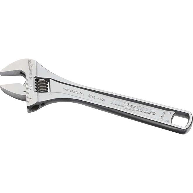The Channellock 8″ wrench is a convenient and durable addition for your everyday fastening jobs. The opening angle is wider and is therefore also suitable for larger diameter nuts and bolts. The extra-long jaws grip the workpiece better, greatly reducing the risk of skidding or nut damage. These jaws are also thinner, giving you greater access in tight spaces. Finally, the 4-thread knurl provides superior adjustment capacity. This tool comes with a limited lifetime warranty.