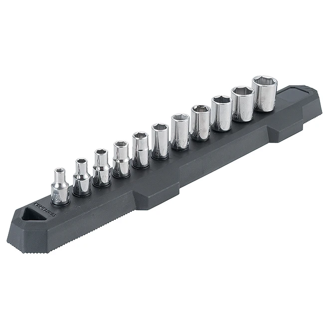 This socket set by Craftsman® features a polished full chrome finish for corrosion resistance and large markings to help you quickly identify the sockets you are looking for. Also, the 6-point socket design allows for increased torque due to a larger contact surface. Sockets meet or exceed ASME specifications. This set includes 11 standard sockets: 5/32″, 3/16″, 7/32″, 1/4″, 9/32″, 5/16″, 11/32″, 3/8″, 7/16″, 1/2″, and 9/16″. This product is backed by the Craftsman® full lifetime warranty.