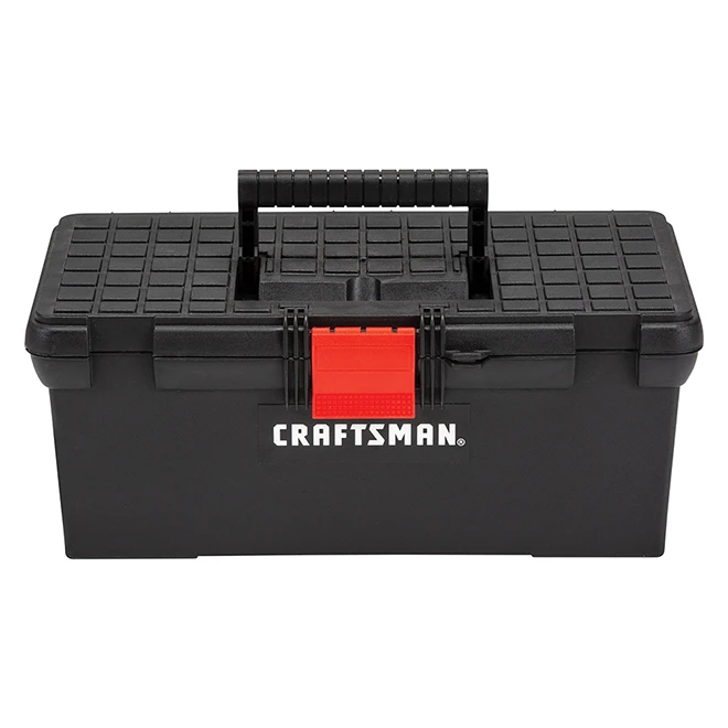 Keep your supplies neat and organized with this classic toolbox by Craftsman®. Made of sturdy material, it comes padlock ready (sold separately) for added safety and an attached collapsible handle. With its spacious interior, this toolbox also includes a removable tray for quick access to smaller tools.