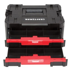 This drawer unit by Craftsman® allows for many different combinations based on your needs, thanks to its Versastack(TM)™ system. It features 2 drawers with ball-bearing slides reliable for heavy-duty loads and rust-resistant latches. The ergonomic handle on top of the unit helps for a comfortable lifting. It can stack on top of other Versastack(TM)™ components for storage convenience.