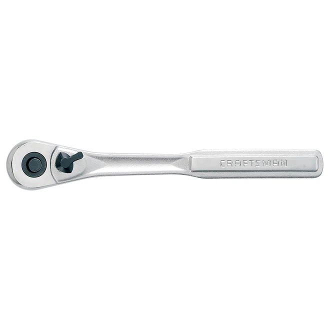 This 3/8″ drive ratchet is part of the Iconic collection by Craftsman®, featuring a polished chrome finish for superior rust resistance and a 36 teeth mechanism. Also, it includes a special quick-release feature with a reversing lever, allowing for easy one-handed operation. Lastly, it meets or exceeds ASME specifications. This product is backed by the Craftsman® full lifetime warranty.