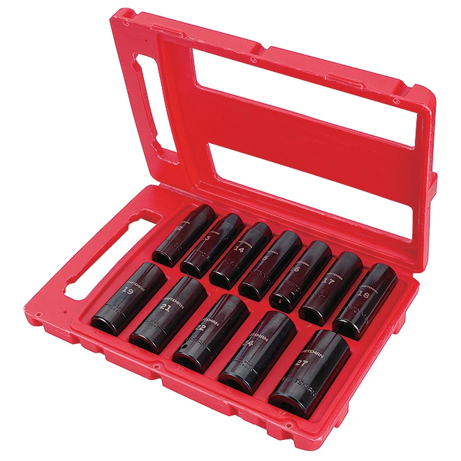 - Includes (12) 1/2-in Drive Deep Impact Sockets Metric (12mm, 13mm, 14mm, 15mm, 16mm, 17mm, 18mm, 19mm, 21mm, 22mm, 24mm, 27mm)