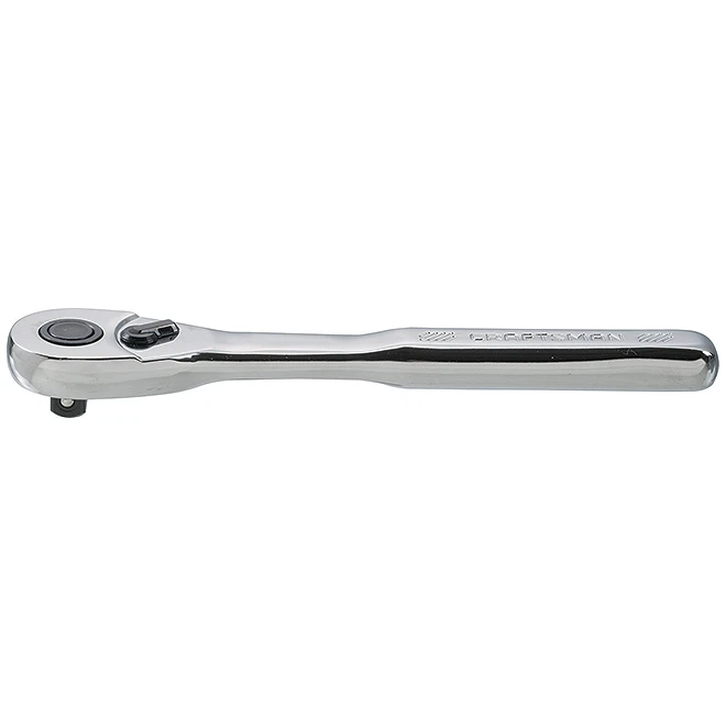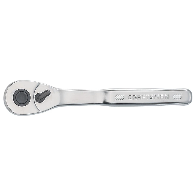 Save precious time thanks to this ratchet offered by Craftsman®. The pear-shaped head presents 72 teeth for minimal arc swing, a 3/8” drive and a polished chrome finish for corrosion resistance. The ratchet meets or exceeds ASME specifications. This product is backed by Craftsman lifetime warranty.