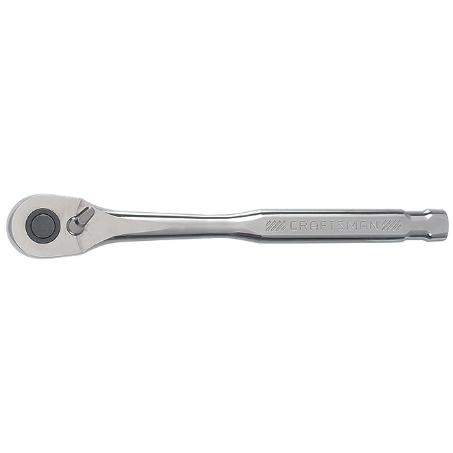 This 1/2″ drive ratchet by Craftsman® features a gunmetal chrome finish for superior rust resistance and a 120 teeth dual pawl mechanism. Also, it includes a special quick-release feature with a reversing lever, allowing for easy one-handed operation. Lastly, it meets or exceeds ASME specifications. This product is backed by the Craftsman® full lifetime warranty.