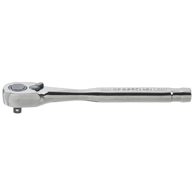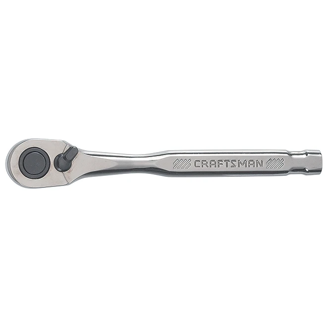This 1/4″ (6 mm) drive ratchet by Craftsman® features a gunmetal chrome finish for superior rust resistance and a 120 teeth pear head, dual pawl mechanism for twice the access. It also includes a special quick-release feature with a reversing lever, enabling a one-handed operation. Lastly, it meets or exceeds ASME specifications and is backed by the Craftsman® full lifetime warranty.
