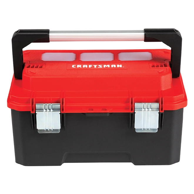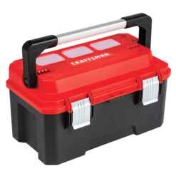 This 20″ Craftsman toolbox is ideal to transport all your hand tools and to have easy access to everything you need. With its tray and removable compartments, the toolbox will keep your accessories tidy at all times. The windows on the cover allow you to see the content of the tray without even opening the toolbox. The toolbox is IP54 certified for sealing against dust and water. The toolbox includes 2 strong metal latches and can be locked for secure storage.
