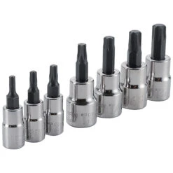 - Includes (3) 1/4-in Drive Torx Bit Sockets (T15, T20, T25) and (4) 3/8-in Drive Torx Bit Sockets (T30, T40, T45, T50)