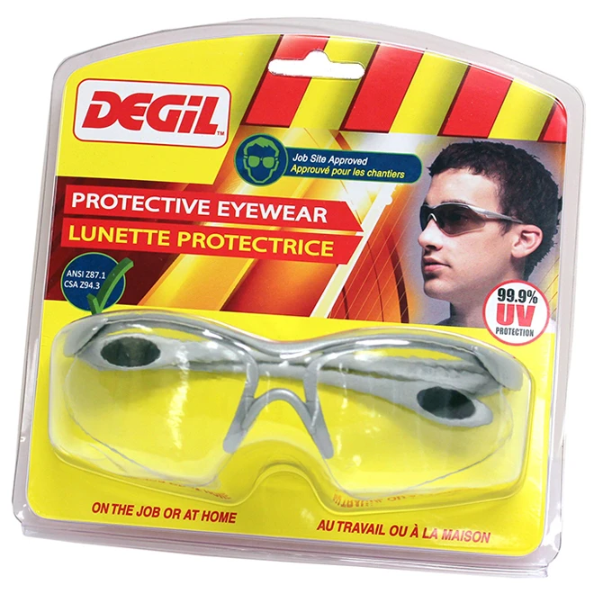 Light-weight impact resistant nylon frame, designed to fit men and women, soft PVC nose piece, impact resistant polycarbornate lenses provides 99.9% UV protection, scratch resistant coating. SEI/CAN/CSA Z94.3-99 certified ANSI Z87.1 approved.