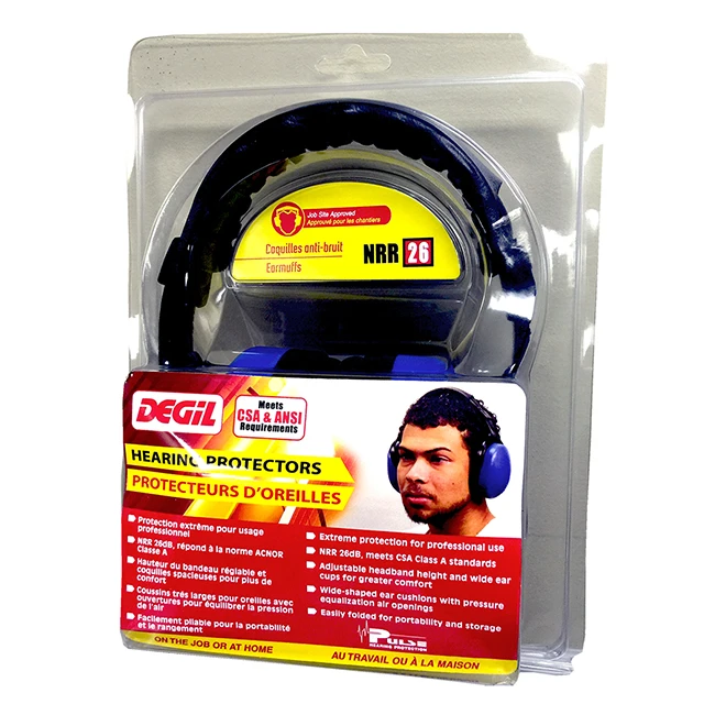 Ear Protector designed for professional use for extreme protection. NRR 26db, meets CSA class A. Spacious cups for most ear sizes. Wide shaped ear cushions with pressure equalization air openings. Stainless steel spring headband wires. Easy height adjustment.