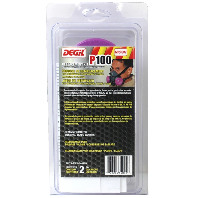 This Degil Safety replacement kit for P100 respirators is designed for working with paint spray, pesticides, and organic vapours. The kit contains the 2 required R95 filters for P100 models.