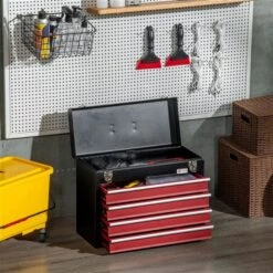 This functional tool case from DURHAND is a great accessory to have, it provides an easy and convenient way to keep all your tools neat and organized. Constructed from robust steel for superior strength. 4 drawers and a top tray provides ample space for your tools and accessories. Lockable design securely keeps your tools in place when not in use. And easy to carry around with built-in handle. It will be a functional and customizable tool chest to fit your precise needs!