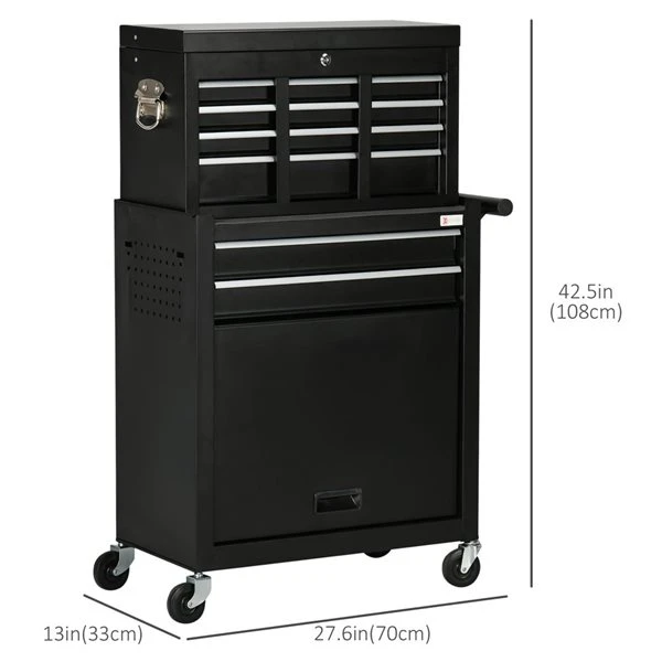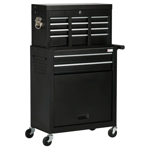 If you need a tool chest to store your tools and keep your workshop clean, this DURHAND tool chest is an excellent choice. 6 drawers in total and a large bottom cabinet provide ample space for your tools and accessories. Inside the cabinet are EVA mats to protect your tools from damage. And four wheels allow smooth and easy movement. The box can be placed on or in the cabinet, it’s up to you. This tool cabinet will be a must-have piece for your garage or workshop.