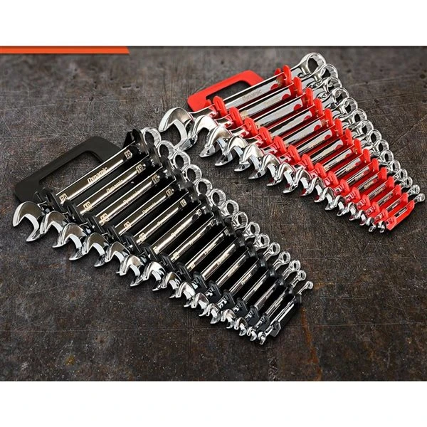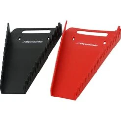 Securely holds wrenches and can be hung on wall or pegboard. Holds 1/4 to 1-1/8 and 6 mm to 28 mm wrenches. These holders are not compatible with stubby wrenches. Red and black colors allow for easy identification between SAE and Metric wrenches.