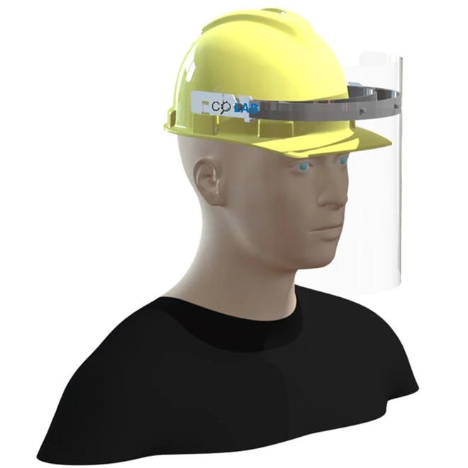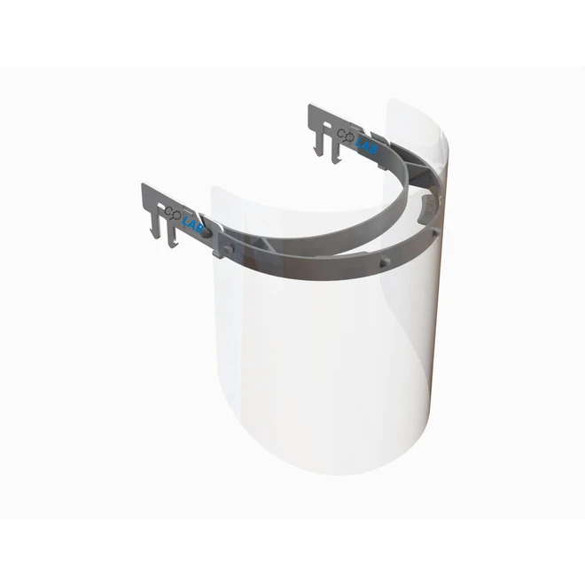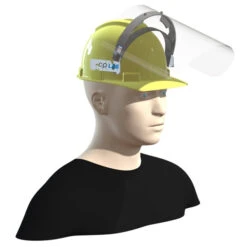 A face shield offers significant protection of the facial area of splashes, sprays and spatters of body and other fluids. With its improved design, this unit is comfortable to wear for extended periods of time. It comports a very clear PETG shield and robust polypropylene support. The shield attaches directly onto a construction hat with two clips provided. The shield is completely reusable and can be cleaned time and time again. (Construction hat sold separately. Made in Canada.