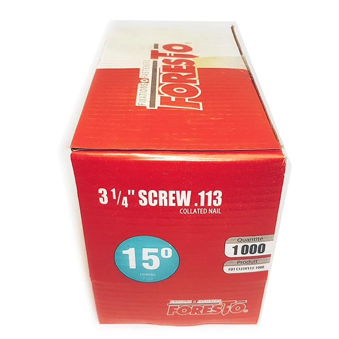 These Foresto(TM) framing nails offer reliable, powerful performance for all your framing projects. The nails have a spiral shank and are used for pallets, framing, sheating, subfloor, decks, trusses and more. The coil nails are compatible for use in most 15° coil framing and roofing nailers. The nails are 3 1/4″ in length and are available in a box of 1000 nails. This product is backed by a 30-day warranty.