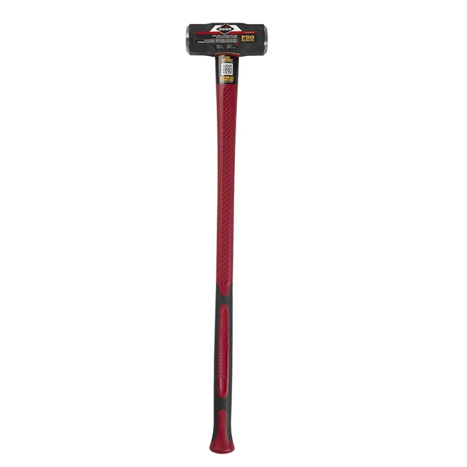 Industrial quality sledgehammer, 10 lbs. double face drop-forged and tempered steel head, machine-finished face, 36 in. high-density polypropylene over-moulded fibreglass handle with rubberized non-slip grip. Safe and durable mechanical assembly. Used for demanding works.