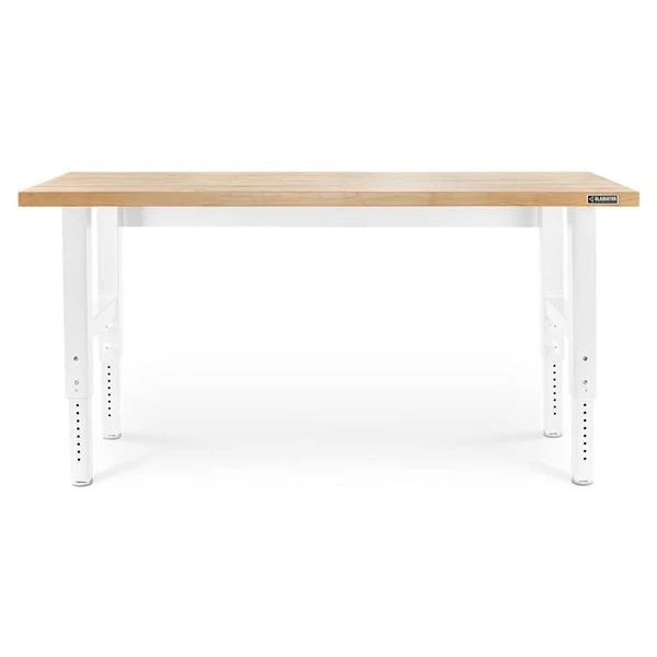 Built to perform wherever you need it, this 6-ft wide workbench features a solid hardwood top with a 3,000 lb max distributed weight capacity. The heavy-duty welded steel legs feature a hammered white finish and adjust easily to provide the proper working height for any project.