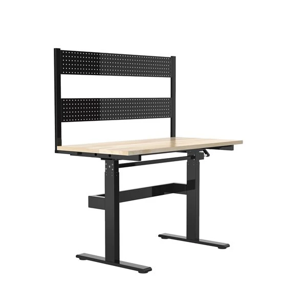The Rocko 48-in manual-adjustable workbench is designed to help you get the job done and features everything you need to keep your workstation organized and functioning smoothly. This multifunctional workstation features a manual crank that can raise and lower the work surface and is designed to support up to 500 lb. The ergonomic design and height-adjustable feature allows you to have the flexibility to sit or stand while working. The solid woodwork tabletop provides a variety of uses around your garage or workshop and the heavy-duty steel legs keep the workbench firmly situated.