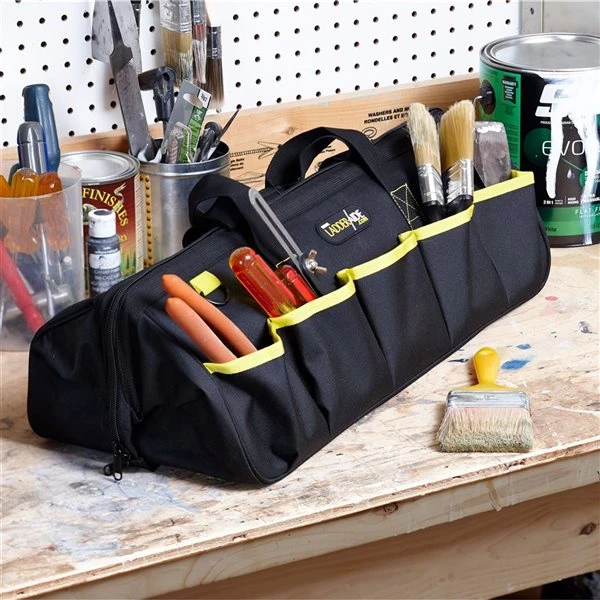 The Ideal PRO Tool Bag features 5 external storage pockets for storing tools and sundries alongside an ultra-wide opening to store your Ladder-Aide PRO or Ladder-Aide SLM. The Ideal PRO Tool Bag is the perfect solution for easily transporting your tools from one job to the next. Its durable 600D polyester fabric makes it resistant to everyday wear and tear, making it an ideal choice as an HVAC tool bag or power tool bag alongside being a storage and transport bag for the Ladder-Aide.