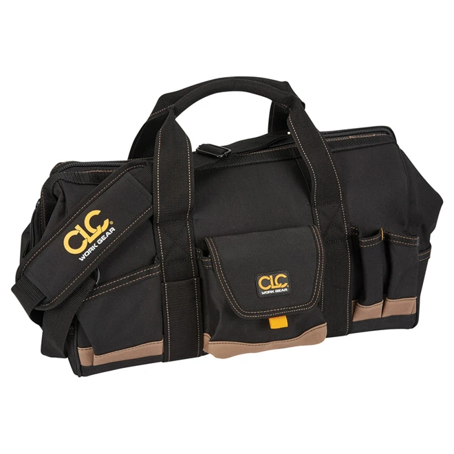 Pack up, store and transport your tools with this Kuny’s Megamouth(TM) tool bag. With 13 internal pockets and 18 external pockets, the tool tote bag offers plenty of space to organize your tools and accessories. The tool bag is made of durable polyester and has an internal metal frame that helps the bag keep its shape to accommodate larger tools. The adjustable shoulder strap is padded to give you extra comfort when carrying it to the jobsite.
