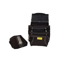 This 11-pocket combo work apron is made from durable split leather. It features 3 pockets reversed for easy access and rust-resistant capped rivets. It comes with 2 pencil pockets, a rust-resistant metal hammer holder and a rust-resistant metal tape holder. It comes with a convenient easy carry handle to make your job easier. Leather fold over loops fits 3″ belt.