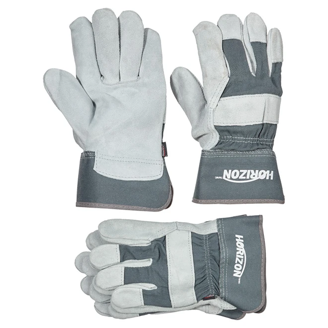 Protect your hands while you work with these durable Horizon men’s work gloves. They feature tough cow split leather on the palms and fingers that offers abrasion-resistance for protection and to help them endure regular use. The cotton backs allow your hands to breathe, while cotton lining on the palms enhances sweat absorption. With an elastic at the back of the wrists, these gloves give you a comfortable fit. The gloves are sold in a pack of three.