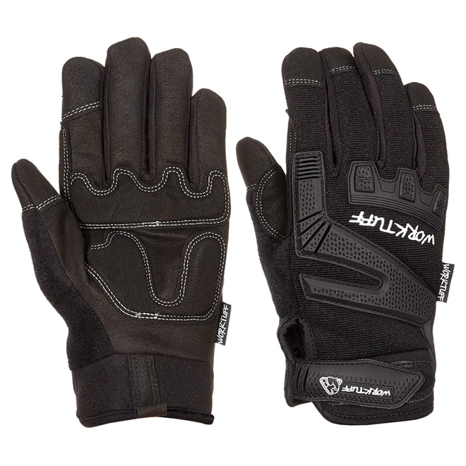 These Worktuff men’s mechanic gloves have an unlined design that gives you impressive dexterity. Padded palms help to protect your hands from the vibrations of tools, while rubber patches over the knuckles guard against impacts. Synthetic leather covering on the palms and fingertips adds abrasion-resistance, helping the work gloves stand up to regular use. They have spandex backs that give them a flexible fit, and self-gripping adjustment at the wrists helps to hold them securely in place.