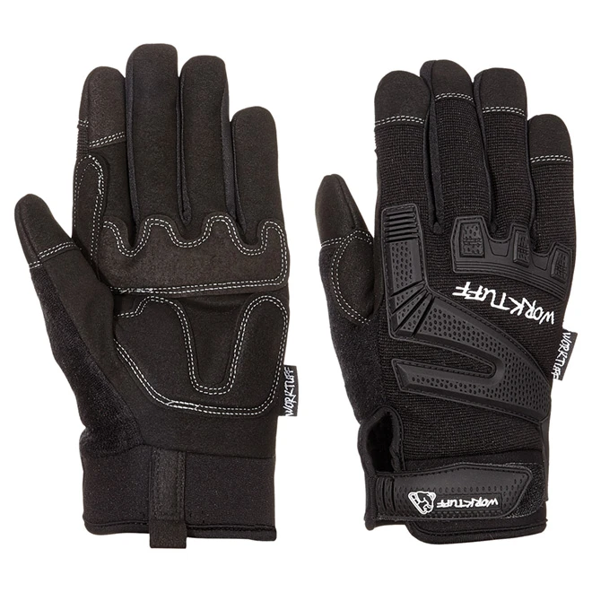 These Worktuff men’s mechanic gloves have an unlined design that gives you impressive dexterity. Padded palms help to protect your hands from the vibrations of tools, while rubber patches over the knuckles guard against impacts. Synthetic leather covering on the palms and fingertips adds abrasion-resistance, helping the work gloves stand up to regular use. They have spandex backs that give them a flexible fit, and self-gripping adjustment at the wrists helps to hold them securely in place.