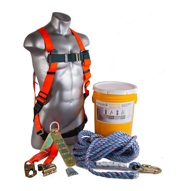 Safety is the number one priority when it comes to roofing jobs. This Norguard roofer’s kit includes all the necessary safety equipment and is ideal for virtually any roofing job. This set includes a harness, a rope grab with 2′ energy absorber, a roof anchor with nails, a 50′ Prosteel rope with snap hook at one end, and a 5-gallon bucket for easy storage.