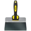 Applies and feathers drywall compounds. Straight edge hardened blue steel blade. Lightweight, flexible and rounded blade can be bent to give it a curved shape. Ergonomically-designed painted polypropylene handle.