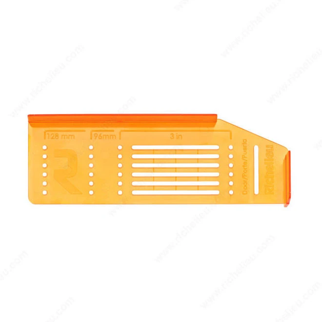 The Richelieu “Econo” drilling template kit makes your cabinet’s pulls and knobs easy and faster to install. It provides multiple center-to-center measurement to help you mark mounting holes, so your cabinets pull and knob will always be level and centered. It features easy drilling and exact hole placement to obtain 3″, 3 3/4″, 5″ and more hole sizes. A 3/16″ drill bit is included. The product is made with orange plastic and is covered by a limited lifetime warranty.