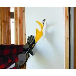 The Stanley “FatMax” functional utility bar is made for demolition work. Forged from one piece of high carbon steel for increased strength and durability, it is a 4-in-1 tool for plying, splitting, board bending and striking jobs. It has a beveled nail slot for pulling and prying nails and a textured grip for excellent comfort and control, even when wet. Its two-tiered jaw for grabbing common dimensional lumber and decking. Its heat-treated and tempered striking face helps prevent chipping. The utility bar measures 18″ and has a high-visibility powder-coated finish.