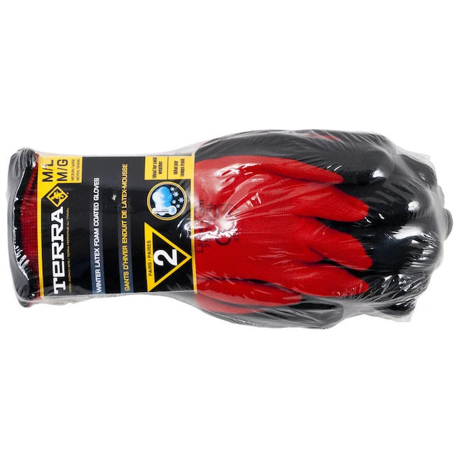 Terra latex foam coated palm winter gloves are made of polyester with a brushed acrylic lining. They can withstand extreme cold temperatures and have tear resistance. They also resist alcohols, and some ketone. Perfect for agriculture, farming, construction, warehouse work and general maintenance.Excellent dexterity when assembly or fine work is required. Anti-slip grip in wet and dry conditions.
